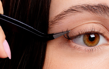 Press and hold each lash for 10 seconds, to secure to your eyelashes.